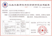 • B級(jí)工業(yè)設(shè)備高壓水清洗資質(zhì)證書